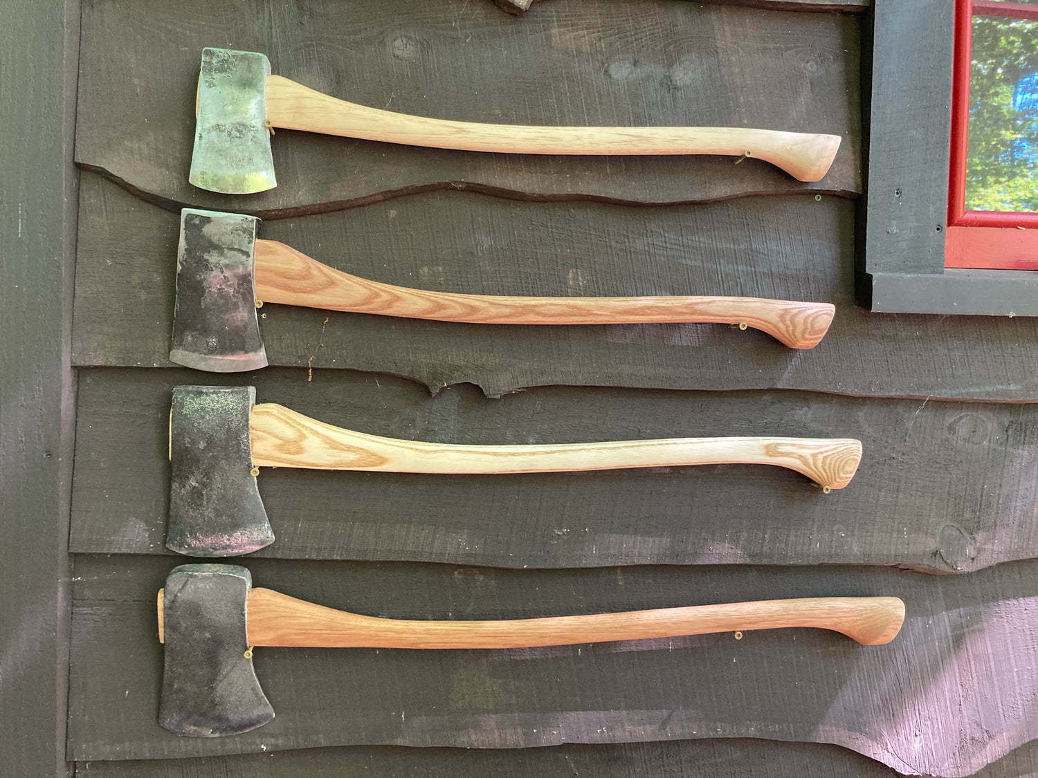 Finding acceptable handles became increasingly difficult. This is what prompted us to start making handles. Our mission is to be a dependable supplier of exceptional axe handles at a fair price. We are not resellers. Other than sawing blanks, everything happens in our home shop.