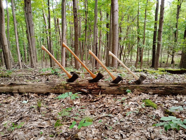 This style handle was most likely conceived by a clever chopper in the “North Woods,” the Adirondack region of New York, who used the wrong bit one too many times. Interestingly, the J. M. Tatem Co. of Eastford Connecticut referred to this pattern as the “double bitt knob” with no mention of Adirondack in their 1933 catalog. We make these in a 28" cruiser with an ¾" x 2 ¼" eye and in 28", 30", and 32" lengths with 3" x ¾" eye.