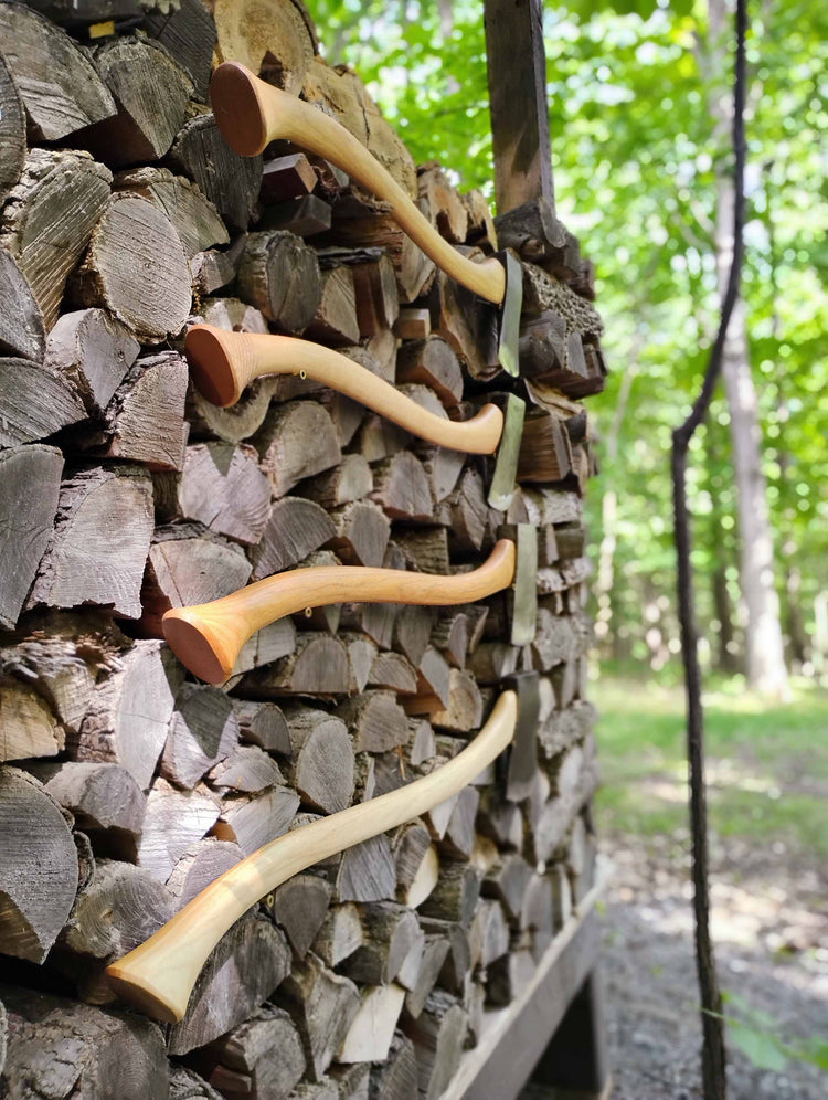 In the New England states, French Canadian “choppers” have always been well-represented in the woods. The axe and saw have given way to the feller buncher, but their quintessential handles are still considered the gold standard for chopping. My son and his cousin found one of these on a picking trip in Connecticut. That handle was instrumental in developing our french pattern line. These springy handles are best used with a 2 ¾ - 3 ½ lb head. These are available in 28" boys with a 2 ¼" x ¾" eye and 28", 30", and 32" lengths with 13/16" x 2 7/16" eyes. Be aware these are slim, measuring 11/16" through the middle.